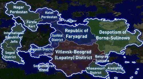 Flag of Vitlevsk Republic Vitlevsk Republic, Lopatny District - the sounthern subject of the federation. It territory was controlled by the forces of Democratic Ruminea, whose capital was Vitlevsk. Entered the composition and formed after the fall of Ruminea. In it are the largest cities of the federation.